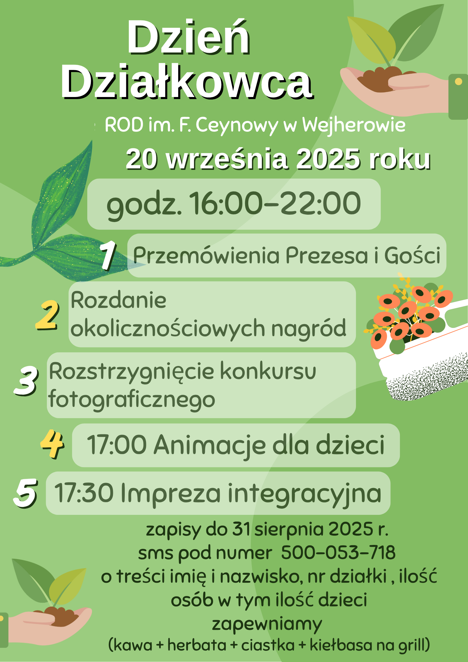 W dnu 20 września 2025 r. w godz. 16.00 - 22.00 odbędzie się Dzień Działkowca, na który serdecznie zapraszamy.